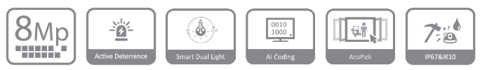 - 8-MP 1/2.8″ CMOS image sensor, low luminance, and high definition image.