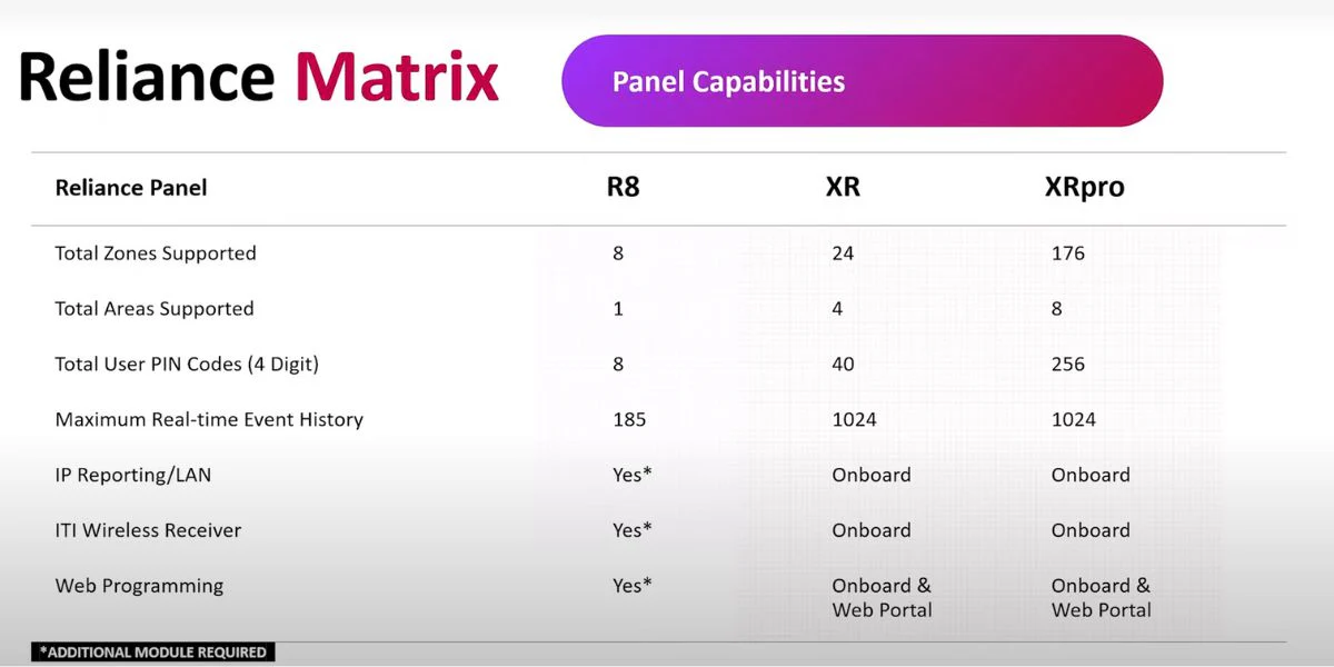 The XR series of panels from Reliance is an intelligent hybrid security solution perfect for installations from residential to massive commercial entities, with an on-board smartphone app module for arming, disarming, and notifications of alarm events.
