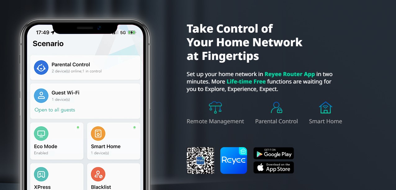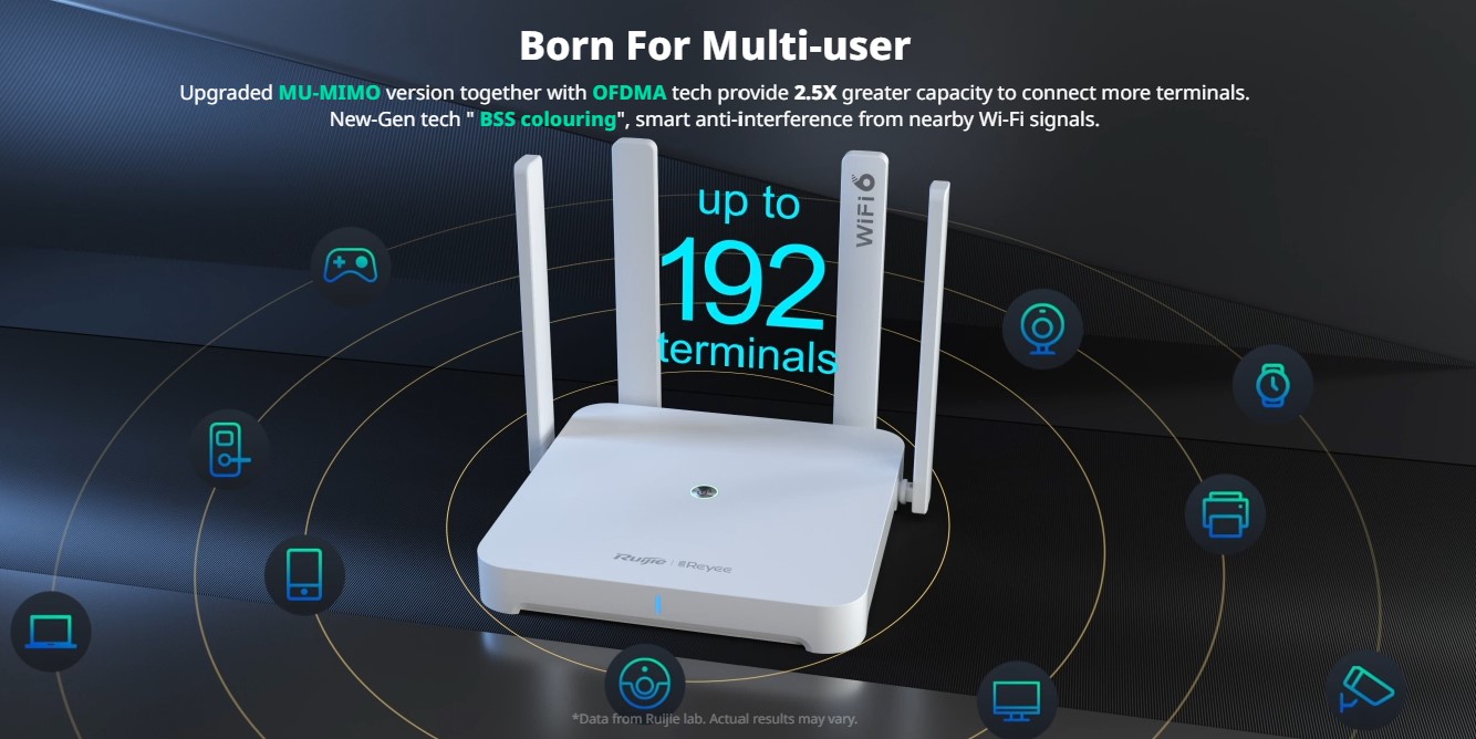 - Exclusive Reyee mesh providing full-space-coverage Wi-Fi solution