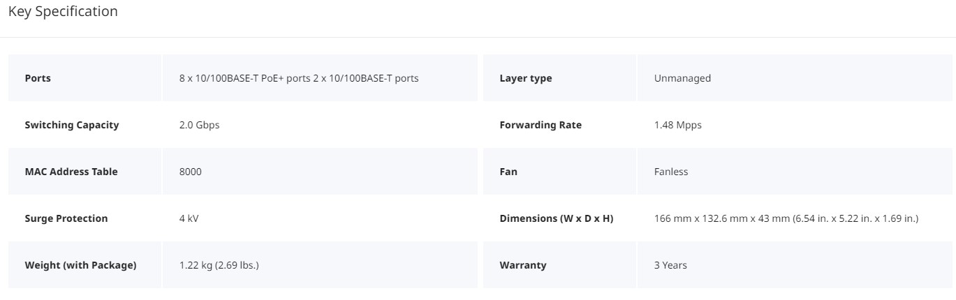 - 10-port 10/100Mbps Unmanaged PoE Switch